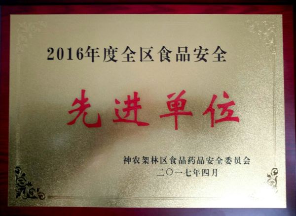 2016年度全區食品安全“先進單位”。