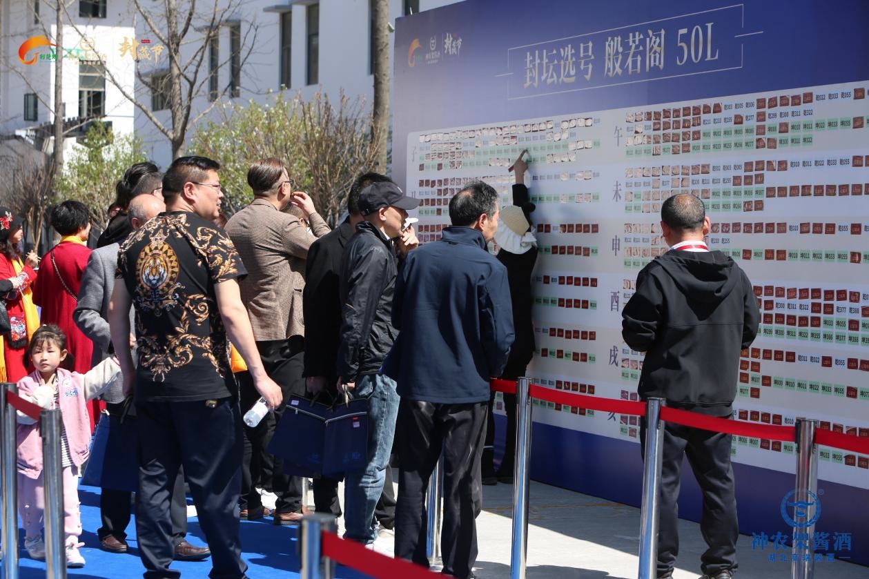 互動封藏區(qū),更是人頭攢動、熱鬧非凡,盡管會場范圍很大,也隨處可聽成功封藏的鑼鼓聲響起。“金鑼一響,黃金萬兩”,意愿封壇的嘉賓付款后,即可憑收據(jù)進行選號封壇,選到心儀的壇號,貼上“已結(jié)緣”的標(biāo)簽,就可以去領(lǐng)取專屬壇卡,現(xiàn)場書法大家手寫封條后,壇主們前往封藏酒庫。酒庫門口,壇主們排隊進行敲鑼拍照,各種量級的壇主都喜氣洋洋,鑼音落,彩帶起,拍照留念后,壇主們絡(luò)繹不絕進入酒庫尋找自己的封藏酒,親自見證上鎖封壇,并在自己的封藏酒前合影留念。低溫的酒庫,難抵壇主們滿心的欣喜和熱情。
